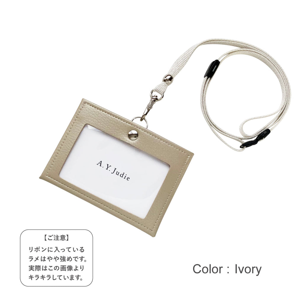 ●材質/【カードホルダー】生地:ポリウレタン、窓:軟質PVC、金具、【ネックストラップ】リボン:レーヨン、キュプラ、ポリエステル、ナイロン、危険防止パーツ付