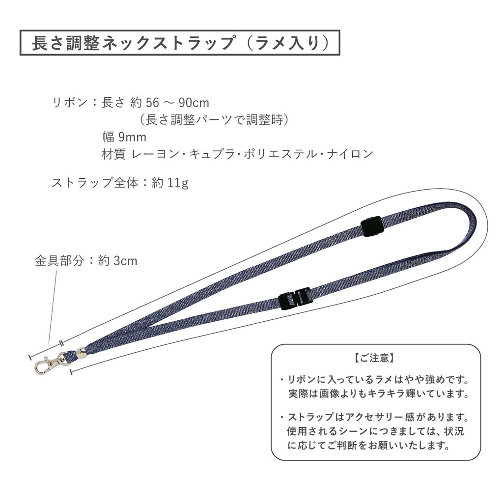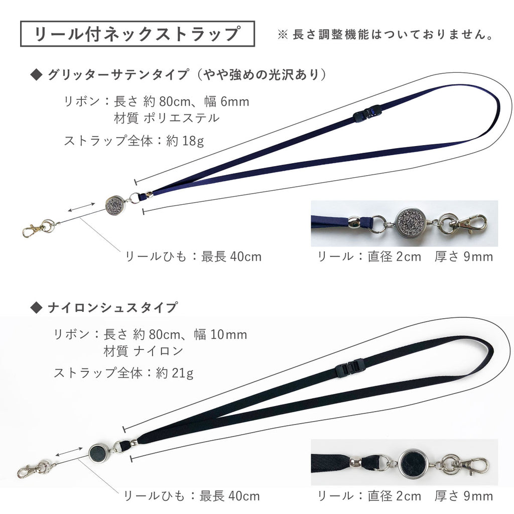 ネックストラップ/【リール付】リボン長さ約80cm、リール長さ:約40cm、【リールなし】リボン長さ約56cm~約90cm
