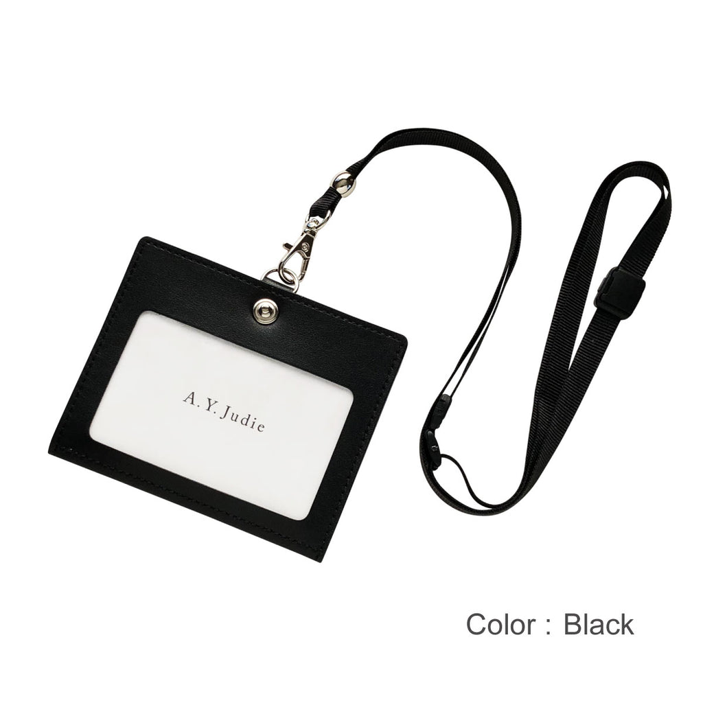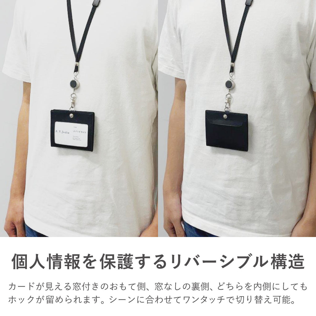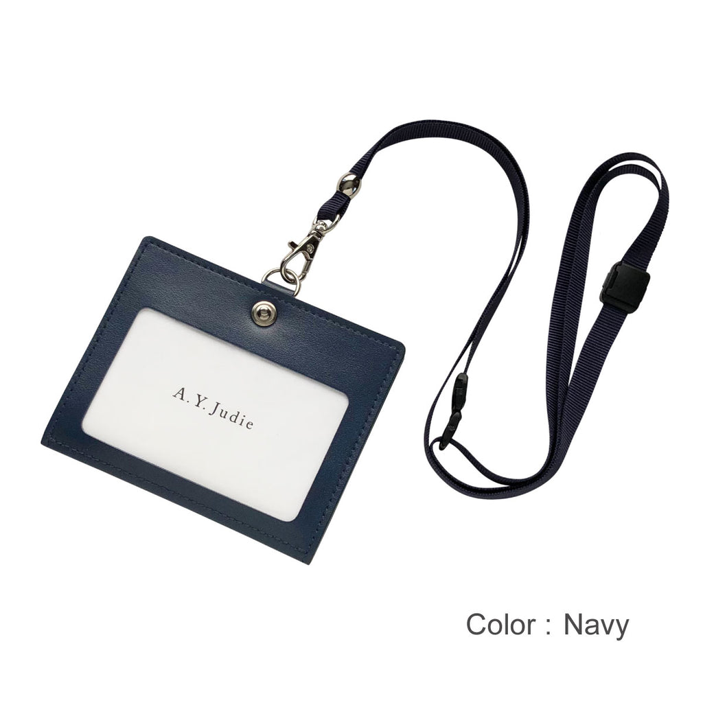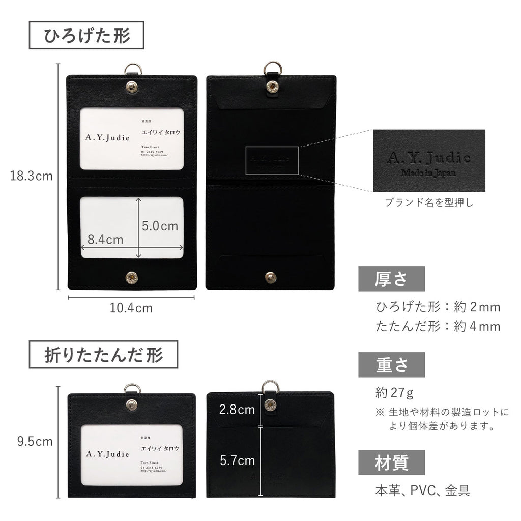 ●材質/【カードホルダー】生地:本革、窓:PVC、金具、【ネックストラップ】リボン:ポリエステル、危険防止パーツ付
