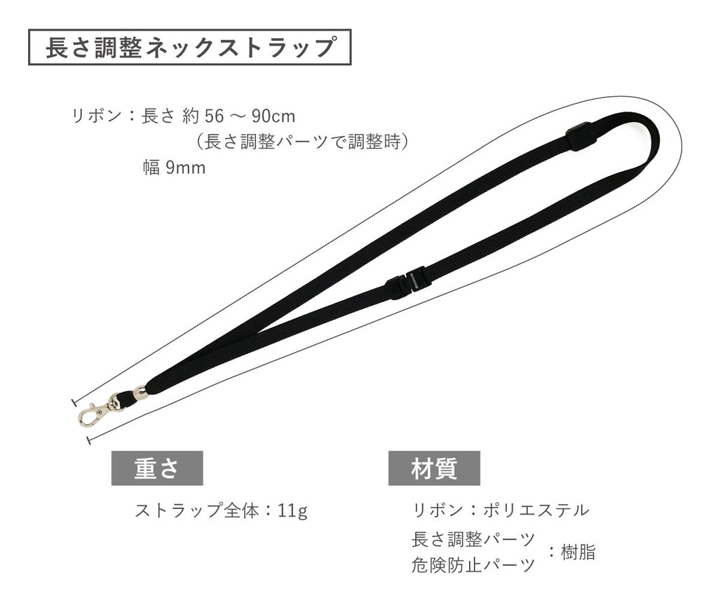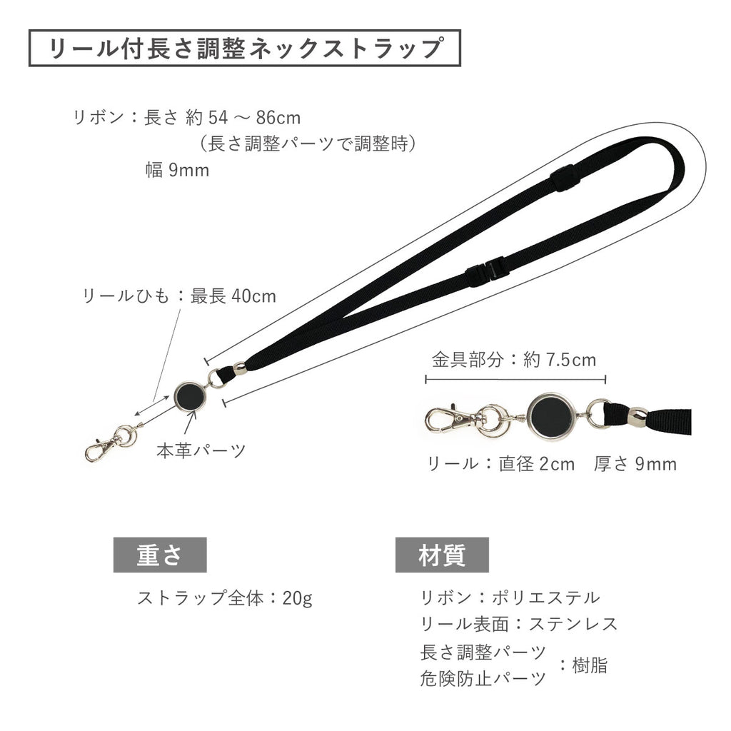 ●ネックストラップサイズ/【リール付】リボン長さ約54cm~86cm、リール長さ:約40cm、【リールなし】リボン長さ約56cm~約90cm